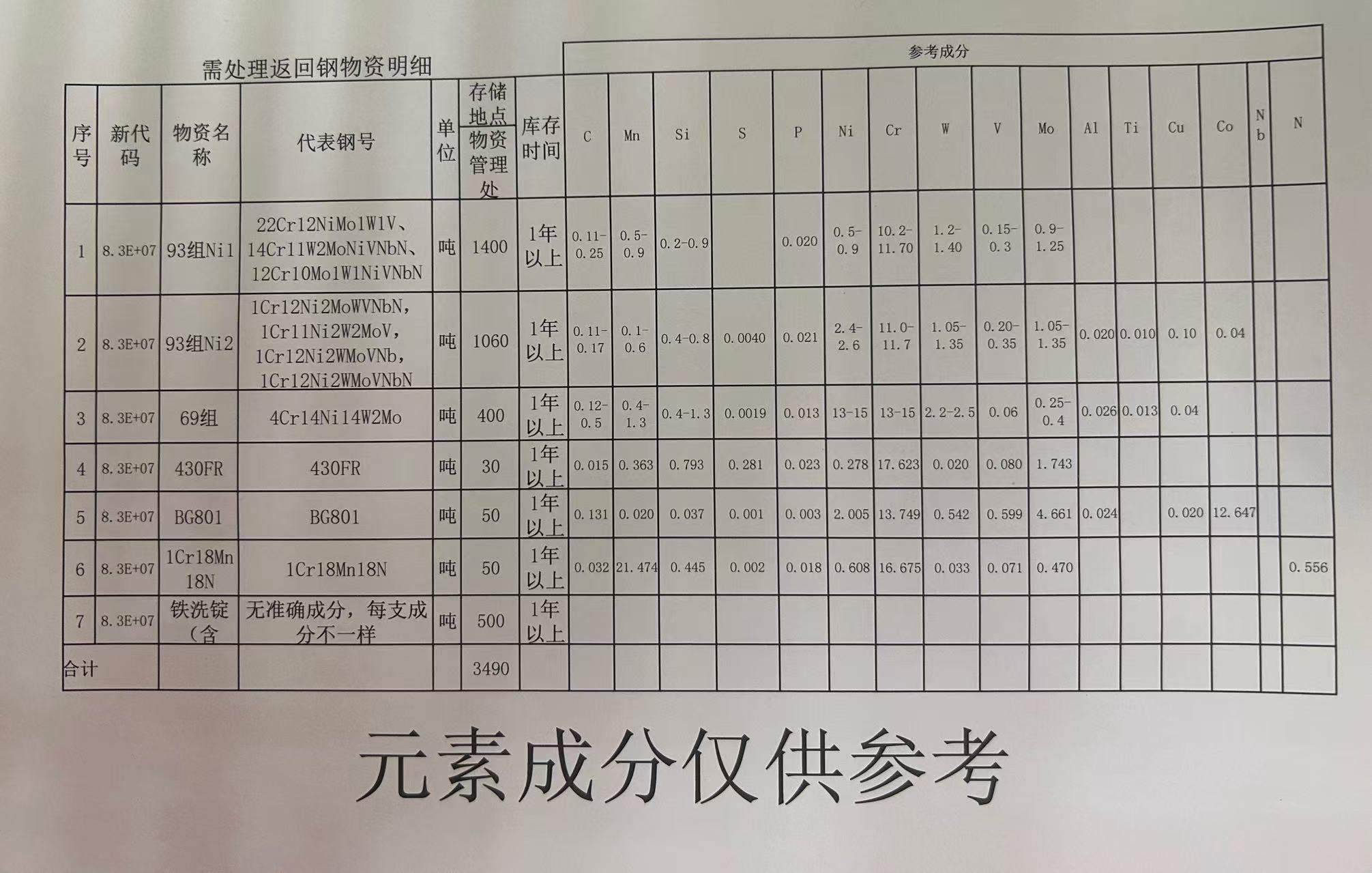 撫順特鋼銷(xiāo)售公司廢舊物資、副產(chǎn)品競(jìng)價(jià)銷(xiāo)售項(xiàng)目公告(11月5日-11月11日)